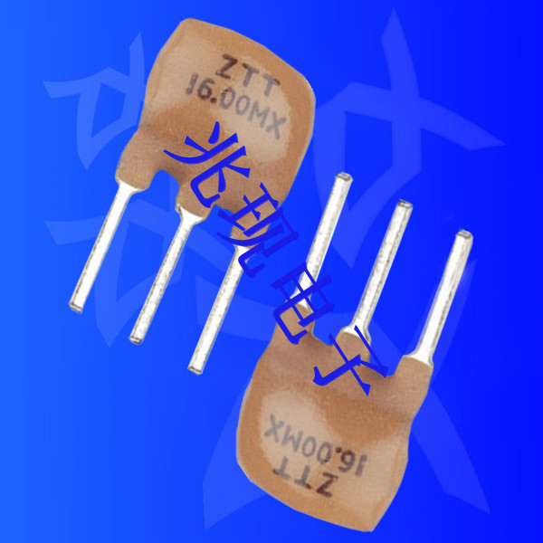 壓電陶瓷諧振器,ZTT16.00MX,陶瓷振蕩子,兆現(xiàn)電子生產(chǎn)的陶瓷諧振器ZTT系列是在原有的ZTA晶振內(nèi)部添加了內(nèi)置負(fù)載電容,引線腳于原來的二腳演變成三腳直插式,這樣一來減去了外部線路設(shè)計(jì)時可以省去電容部分,大大減少了線路空間,且可減少元器件的數(shù)量,增加穩(wěn)定性,減小尺寸,為電路設(shè)計(jì)者們提供了非常的方便,并且外形尺寸也沒有太大的改變.此規(guī)格的頻率范圍在 2.0 MHz 至 60.00 MHz,頻率公差為 ±0.5%,±0.3%.ZTT三腳陶瓷諧振器產(chǎn)品系列可用于振蕩電路設(shè)計(jì),無需外部負(fù)載電容器,既獲得了高密度安裝,又降低了成本.產(chǎn)品被廣泛應(yīng)用到數(shù)碼電子產(chǎn)品,家用電器,無線發(fā)射器,調(diào)音線控等電子產(chǎn)品.