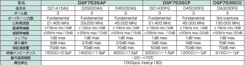KDS貼片濾波器,聲表面濾波器DSF753S,對講機濾波器,外形尺寸:7.0×5.0×1.3,小型?輕量(0.15g)SMD類型通過單體實現4POLE特性,保證衰減量特性卓越耐撞擊性,耐振動性卓越,被應用于商務無線等無線通信機,小型表面貼片型標準晶體諧振器,適用于寬溫范圍的辦公自動化"1D21407AQ3",家電電器及汽車附件等領域??蓪?MHz以上的頻率,在辦公自動化,家電相關電器領域可發揮優良的電氣特性,滿足無鉛焊接的回流溫度曲線要求.