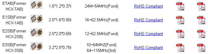 諧振器HCX-2SB2520,HCX-1AB2016,HCX-TAB1612晶振