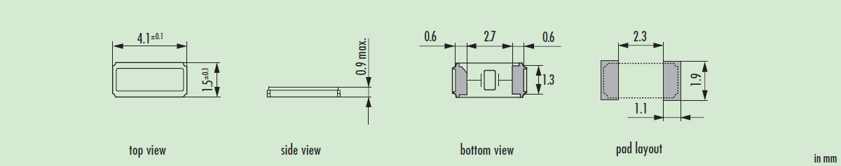 JAUCH晶振,石英晶振,JTX410晶振,貼片表晶32.768K系列具有超小型,薄型,質地輕的表面貼片音叉型石英晶體諧振器,晶振產品本身具備優良的耐熱性,耐環境特性,在辦公自動化,家電領域,移動通信領域可發揮優良的電氣特性,符合無鉛標準,滿足無鉛焊接的回流溫度曲線要求,金屬外殼的石英晶振使得產品在封裝時能發揮比陶瓷晶振外殼更好的耐沖擊性能.