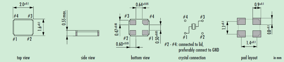 當晶振產(chǎn)品上存在任何給定沖擊或受到周期性機械振動時,比如:壓電揚聲器,壓電蜂鳴器,以及喇叭等,輸出頻率和幅度會受到影響.這種現(xiàn)象對通信器材通信質(zhì)量有影響.盡管晶體產(chǎn)品設(shè)計可最小化這種機械振動的影響,我們推薦事先檢查并按照下列安裝指南進行操作.JXS21-WA晶振,2016封裝晶體,超小型無源貼片晶振