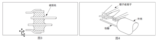 彎曲導腳的方法(1) 將導腳彎曲之后并進行焊接時,導腳上要留下離外殼0.5mm的直線部位。如果不留出導腳的直線部位而將導腳彎曲,有可能導致玻璃的破碎 (參閱圖5 和圖6)。(2) 在導腳焊接完畢之后再將導腳彎曲時,務必請留出大于外殼直徑長度的空閑部分 (參閱圖7)。如果直接在外殼部位焊接,會導致殼內真空濃度的下降,使晶振特性惡化以及晶振芯片的破損。應注意將晶振平放時,不要使之與導腳相碰撞,請放長從外殼部位到線路板為止的導腳長度 (L) ,并使之大于外殼的直徑長度(D)。