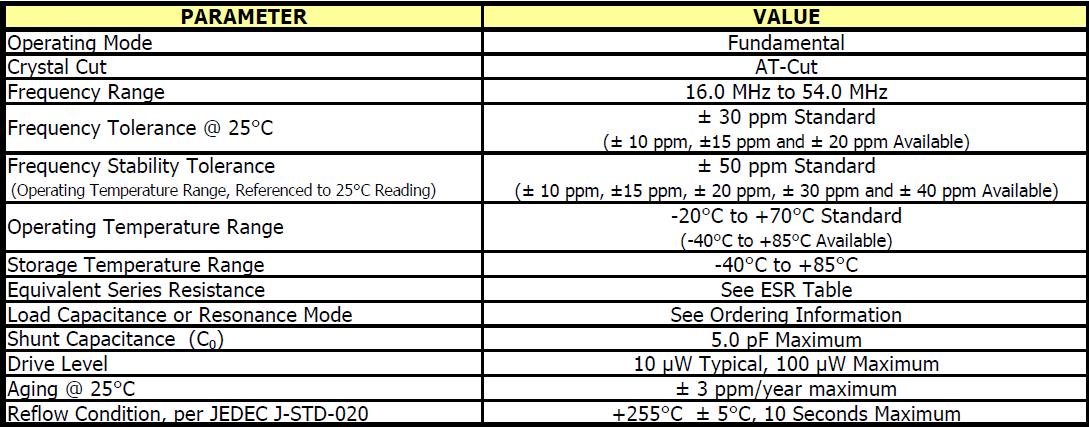 X1G0044010011 | VG2520CAN | 27.000000 MHz | 2.50 x 2.00 x 0.70 mm | CMOS | -40 to 85 °C | +/-50 ppm | 3.135 to 3.465 V |