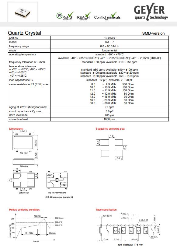 12.87163 | GEYER | CRYSTAL 32.768KHZ 7PF SMD | KX-327RT | ±20ppm | -40°C ~ 85°C | 2 | 2012 | Geyer Electronic America, Inc. |