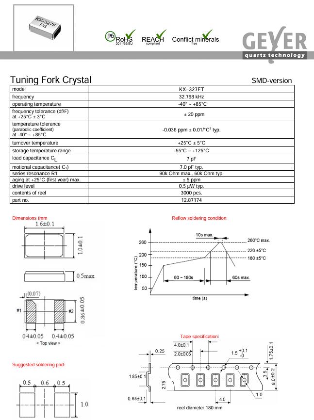 更多>>12.87174 KX-327FT 1610 32.768K 7PF格耶Geyer晶振