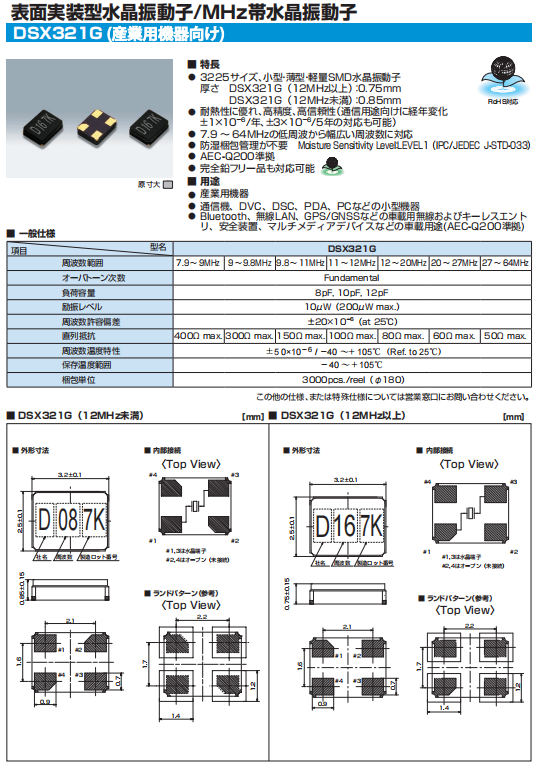 KDS石英晶體諧振器1C208000BC0對(duì)應(yīng)型號(hào)DSX321G-8M