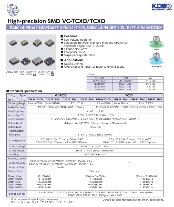 更多>>1XXB16368MAA晶振型號DSB221SDN KDS溫補TCXO 16.368M