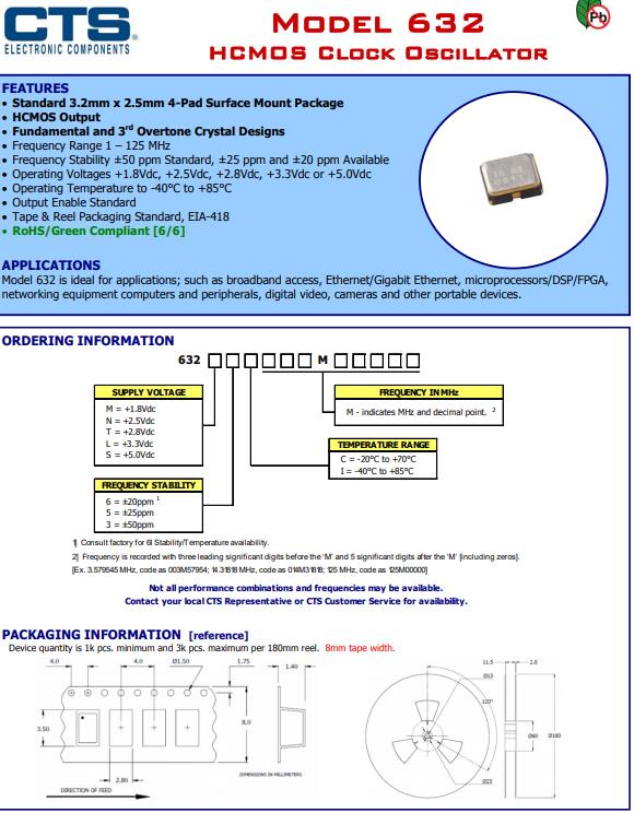 632L3I024M00000 | CTS-Frequency Controls | 632 | 24MHz | ±50ppm | 0.126" L x 0.098" W (3.20mm x 2.50mm) |