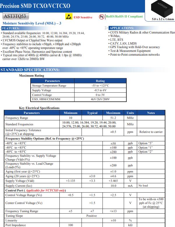 更多>>新穎的溫補晶振AST3TQ53-T-20.000MHZ-2-C是COTS軍用無線電最佳臻選