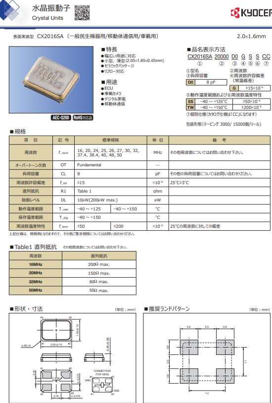CX3225GB16000P0HPQCC | AVX Corp/Kyocera Corp | CX3225GB, Kyocera | MHz Crystal | 16MHz |