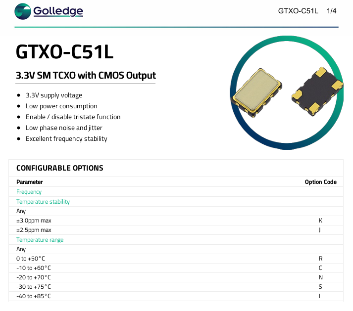 MP02962 | Golledge | 27.0MHz GTXO-C51L/JS SM CMOS TCXO | GTXO-C51L | 3.3V | ±2.5ppm | -30°C ~ 75°C | 4 | 5032 |