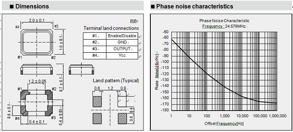 其性能特征有:能夠支持44.1kHz(CD)和48kHz(PC-Audio)系統;具有體積小,改善的頻率溫度特性和低相位噪聲特性.(-165dBc/Hz@100kHz偏移,24.576MHz);超輕巧,高度,立方體積和最大重量.分別為0.8毫米,0.0022立方厘米和0.008克;具有啟用/禁用(待機)功能.