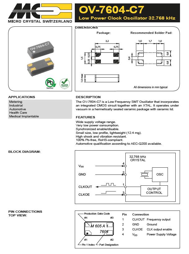 OV-7604-C7-32.768kHz-20PPM-TB-QC | Micro晶振 | 標(biāo)準(zhǔn)時(shí)鐘振蕩器 32.768 kHz +/-20 PPM -40/+125C |