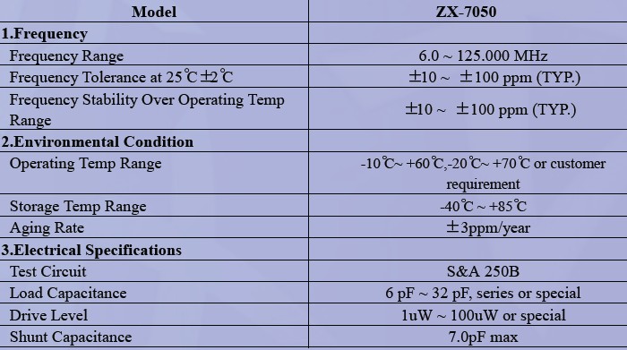 貼片晶振,石英晶振ZX-7050,石英晶體諧振器